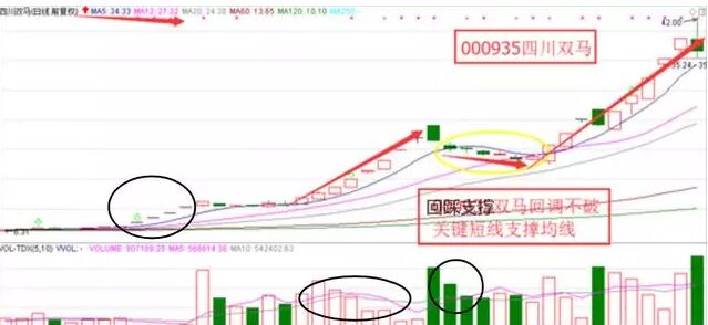 3、 前期拉升過程必須要有成交量的不斷放大,回踩過程中,成交量極度縮量,表示資金沒有退場,準(zhǔn)備第二波的拉升。