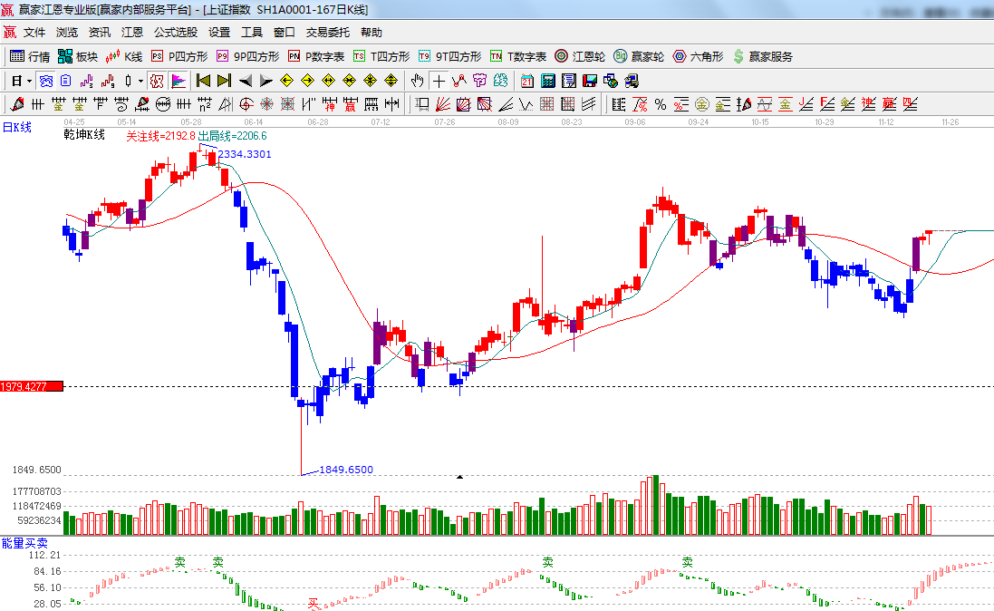 ★依據(jù)贏家江恩系統(tǒng)能量買賣提示:紅色柱子出現(xiàn),多方占據(jù)主動(dòng)權(quán)看多;