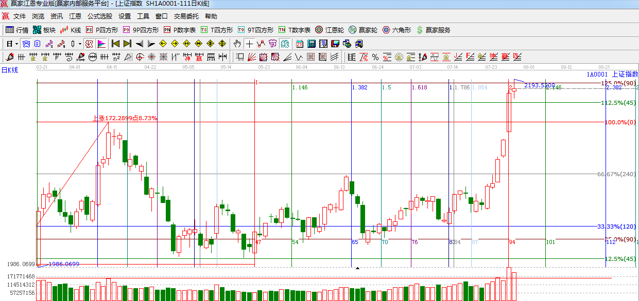 ☆依據(jù)贏家江恩系統(tǒng)黃金時(shí)間周期線提示:7月28日是前期提到的時(shí)間窗口,短期下一時(shí)間窗口是8月06日